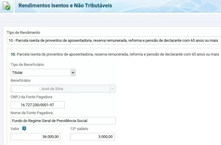 É importante ressaltar que a parcela isenta de R$ 24.751,74 só vale para a aposentadoria ou pensão